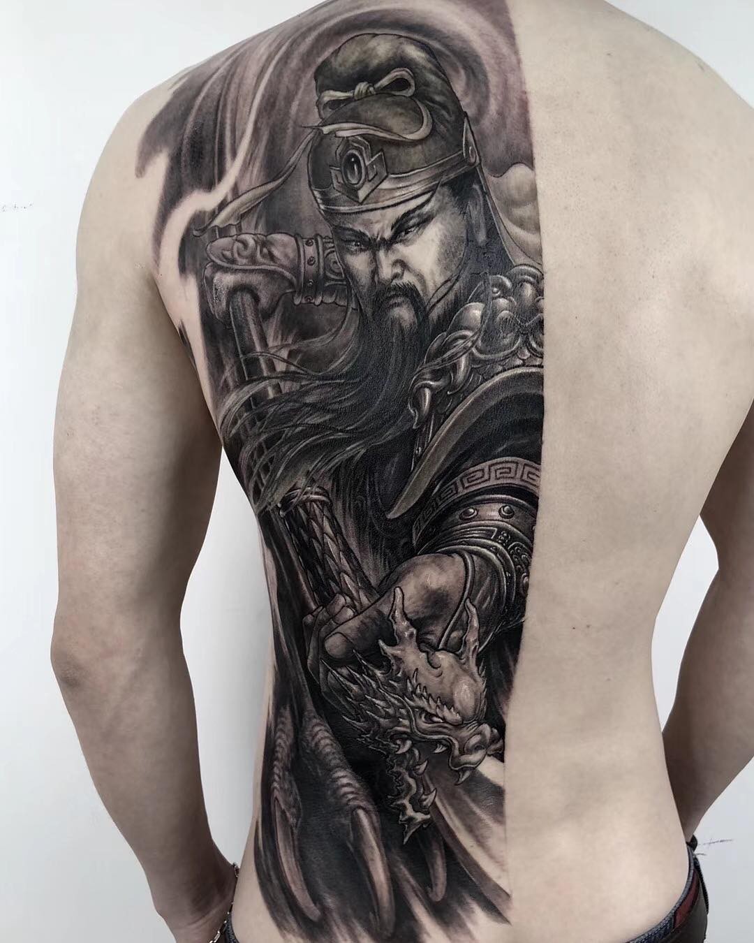 Guan Yu 驭龙吐月5 Warriortattoo Blackandgreytattoo Backpiece Tattoo Art Worldwide Tattoodesign Amazingtattoos Ski Are Na